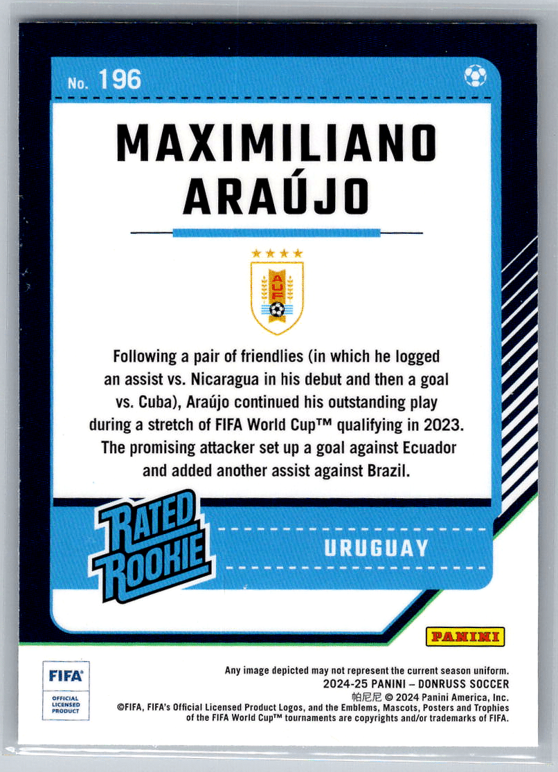 Maximiliano Araujo 24-25 Donruss Rated Rookies Optic No 196
