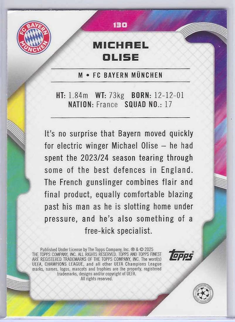 Michael Olise 24-25 Topps Finest Sky Blue Refractor 214/275
